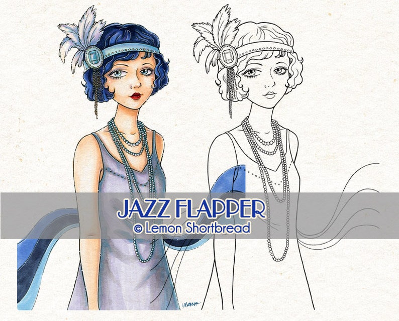 Digital Stamp Jazz Flapper Girl Digi Art Deco Coloring Page Etsy